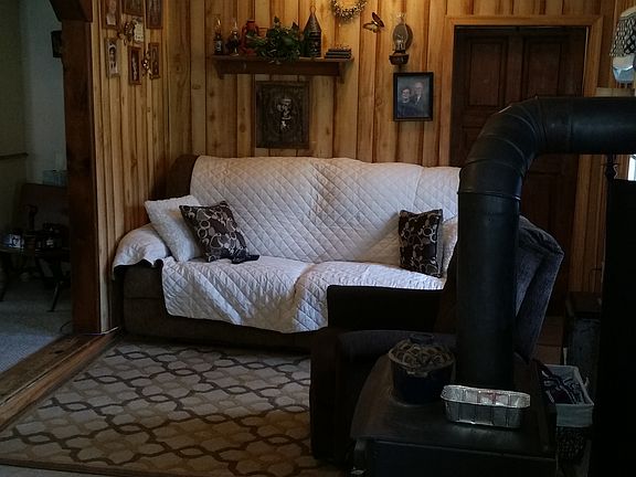 Home is located on a little under an acre of land. Roof replaced in 2007, new furnace(oil), new carpet throughout the house, new water lines from well to house, new well pump, new hot water tank. Windows were replaced in 2008. this home is a perfect starter home. I have lived here close to 20 years, This home also has a detached oversized garage. Selling the stove, refrigerator, washer and dryer with the house. Lot's of closet space. 3 bedrooms, 2 baths, office, mudroom and living room. Woodstove also in the home is only 3 years old. Simple living. Mobile home deed was retired. Mobile is unable to be moved. Taxes are low. Two out buildings, lot's of storage.