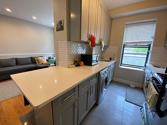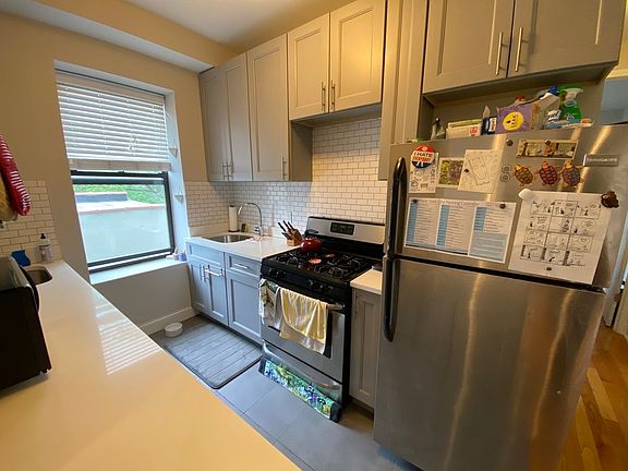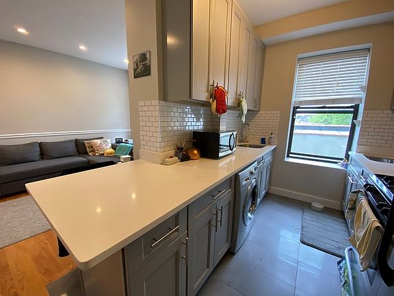 Washer/Dryer in apartment! Rent stabilized apt! Newly renovated, gorgeous, quiet, clean, very bright & sunny LARGE 1 bedroom apartment. Open kitchen with bar, includes new appliances including refrigerator, range, washer & dryer, white granite counter tops, back-splash and 42" Custom made gray cabinets with self closing doors & a pantry. The bedroom has windows with natural sun light, fit queen size beds, desk & dresser & have two closets with 8 foot solid core closet doors and shelving. Living room & common area includes lots of windows natural sun light, two large closets & storage, floor and chair rail moldings, recessed lighting & video intercom. Bathroom includes 20" deep acrylic tubs, 24" solid wood vanity & high grade fixtures including porcelain tiles. Located on the 3rd floor of a elevator apartment building is located on a prime, tree lined quiet block in the heart of Prospect Heights near all shopping, boutique stores, restaurants, schools, a short walk to the Brooklyn Botanical Garden, the Brooklyn Museum and Prospect Park and the # A, C, 3 & 4 train lines placing you within 20 minutes of downtown Manhattan. * CCTV Video cameras & access control system for both the front & vestibule doors * Recessed lighting * common area large closet * Heat, hot water & cooking gas included * Guarantors are accepted nationwide! * Rhino accepted 1575 President Street, Apt. #14 is available JULY 1 directly from the owner for $2,000 NO FEE #brooklyn #nofee #apartments In person showing by appointment: Sundays 12 - 4 pm, Mondays thru Thursday 4 - 7 pm Please contact us for more info on this and other no fee apartment available directly from us the owner. Follow us twitter/ownernofee All square foot #'s are estimate