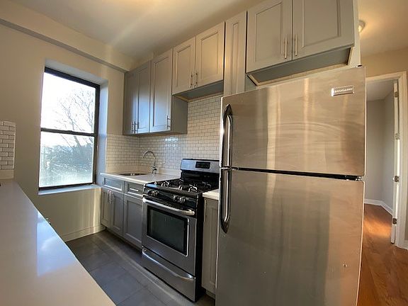 Washer/dryer in apartment! Rent stabilized apt! Brand new gut renovated, drop dead gorgeous, quiet, clean, very bright & sunny 1 bedroom apartment with a separate full kitchen which includes top of the line stainless steel appliances including refrigerator, range & washer/dryer, white granite counter tops, ceramic tile flooring with subway style tiled back splashes & 42" Custom made cabinets with self closing doors. Bedroom fits queen size bed, dresser & desk, has windows with a closet with 8 foot solid core closet doors with shelving. Living room has windows, wide planked first quality oak flooring, recessed Lighting, floor moldings. 10 foot ceilings throughout the apartment. Bathroom has 20" deep acrylic tub, 24" solid wood vanity & high grade fixtures including porcelain tiles. Located on the 4th floor of a 4 story walk-up apartment building is located on a prime, tree lined quiet block in the heart of Crown Heights near all shopping, boutique stores, restaurants, schools, a short walk to the Brooklyn Botanical Garden, the Brooklyn Museum and Prospect Park and the # 3 & 4 train line placing you within 20 minutes of downtown Manhattan. The building has a full time repairman and superintendent, CCTV Video cameras with access key control and is lit up at night like Times Square. * Pets Allowed * CCTV Video cameras & access control system for both the front & vestibule doors * Guarantors are accepted nationwide! * Rhino accepted * Heat, hot water & cooking gas included! 1575 President Street, Apt. #a19 is available directly from the owner for $1985 NO FEE May or June move in In person showing by appointment: Sundays 12-4 pm, Monday thru Thursdays 4-7 pm Please contact us for more info on this and other no fee apartment available directly from us the owner. follow us twitter/ownernofee all sq foot # are estimate