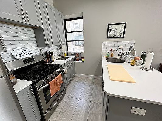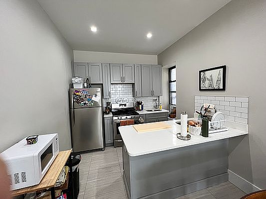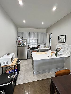 Washer/Dryer in apartment! Rent stabilized apt! Newly renovated, gorgeous, quiet, clean, very bright & sunny LARGE 2 bedroom apartment. Open kitchen, includes new appliances including refrigerator, range, washer & dryer, white granite counter tops, back-splash and 42" Custom made gray cabinets with self closing doors & open bar. Both bedrooms have windows with natural sun light, fit queen size beds, desk & dresser & have closets with 8 foot solid core closet doors and shelving. Living room & common area includes lots of windows natural sun light, large closets & storage, floor and chair rail moldings, recessed lighting & intercom. Bathroom includes 20" deep acrylic tub, 24" solid wood vanity & high grade fixtures including porcelain tiles. Located on the 1st floor of a walkup apartment building is located on a prime, tree lined quiet block in the heart of Crown Heights near all shopping, boutique stores, restaurants, schools, a short walk to the Brooklyn Botanical Garden, the Brooklyn Museum and Prospect Park and the # A, C, 3 & 4 train lines placing you within 20 minutes of downtown Manhattan. * CCTV Video cameras & access control system for both the front & vestibule doors * Recessed lighting * common area large closet * Heat, hot water & cooking gas included * Guarantors are accepted nationwide! * Rhino accepted 1575 President Street, Apt. #1 is available April 1 directly from the owner for $2,475 NO FEE #brooklyn #nofee #apartments In person showing by appointment: Sundays 4 - 5 pm, Mondays, Tuesdays and Wednesday 6 - 7 pm Please contact us for more info on this and other no fee apartment available directly from us the owner. Follow us twitter/ownernofee All square foot #'s are estimate