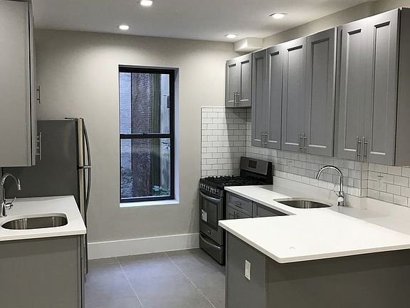 WASHER/DRYER IN THE APARTMENT! Brand new gut renovated, drop dead gorgeous, quiet, clean, very bright and sunny TWO bedroom apartment with a open kitchen & bar & Living room, heat, hot water and cooking gas included: Kitchen: * Top of the line stainless steel appliances including refrigerator and range * White granite counter tops, ceramic tile flooring & subway style tile back splashes * 42" Custom made gray cabinets with self closing doors * LG Washing and drying machines in the apartment Bathroom: * 20" deep acrylic tubs * 24" solid wood vanity * High grade fixtures including porcelain tiles Living room/bedroom: * 10 foot ceilings throughout the apartment * 8 foot solid core closet doors with shelving in each bedroom and living room * Oak flooring throughout * Floor moldings throughout * Recessed Lighting Located in a 4 story walk-up apartment building is located on a prime, tree lined quiet block in the heart of Crown Heights near all shopping, boutique stores, restaurants, schools, a short walk to the Brooklyn Botanical Garden, the Brooklyn Museum and Prospect Park and the # 3 & 4 train line placing you within 20 minutes of downtown Manhattan. The building has a full time repairman and superintendent, CCTV Video cameras with access key control and is lit up at night like Times Square. * Full time live in repairman and superintendent * Front of building is lit up at night like Times Square. * Pets Allowed * CCTV Video cameras & access control system for both the front & vestibule doors * Guarantors are accepted nationwide! 1575 President Street Apt. #4 is available NOW OR November 15 directly from the owner for $2,425 NO FEE Open house by appointment Sunday 12 4 pm Mondays thru Fridays 4 7 pm heat, hot water & cooking gas included all square footage numbers are estimates