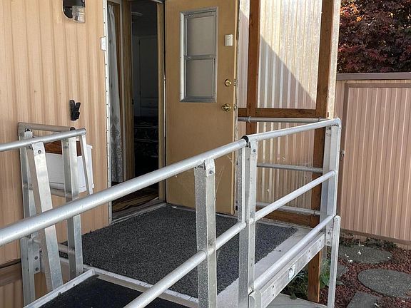 Price Reduction. Nice, clean and well kept 1 bed 1 bath mobile home in a park with great access ramp and two sheds, one is set up as a workshop. Private yard awning and good parking.