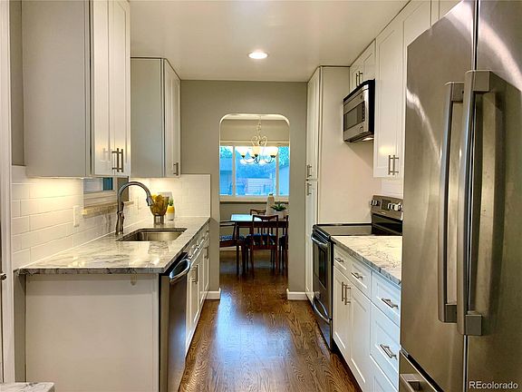 Perfectly situated on a large, sunny lot, this darling Virginia Village home welcomes you to begin your Denver summer adventures in style! Offering plenty of space and a large bedroom count, this delightful mid century, brick home is charmingly updated and ready for her new owners! Step inside to find original hardwood floors, cheery fireplaces, and an updated kitchen with bright white cabinets, glossy quartz counters and SS appliances. The kitchen opens to the dining room and the unique, attached greenhouse space that is perfect for anyone who loves urban gardening! Upstairs find 3 spacious bedrooms and a beautifully updated marble and tile bathroom, and on the lower level find another 2 bedrooms, brightly updated bath, convenient laundry and bonus work/mudroom. Head down one more level to find a cool and comfortable living room, perfect for movie night! The 10,000+ sf lot is quiet and private, and has plenty of room to accommodate all your landscaping and gardening dreams, with the modern fencing, sprinkler system, and greenhouse already in place. The generous, attached garage and carport offer plenty of parking, plus enjoy the long driveway for additional cars, RVs or other outdoor toys! Just a quick walk to the library and several parks, plus easy access to Colorado Blvd and I25. Attractively priced for location, square footage and lot size, call today to set your private showing before this beauty is spoken for! Immediate possession is available.