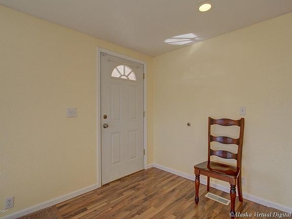 Beautiful single family home with magnificent mountain views. 3 bedroom, 2 bath with an office. There is a completely fenced-in garden, huge lawn, cold storage shed/workbench w/ electricity. The home is located in a very convenient location, especially if you commute to Anchorage.