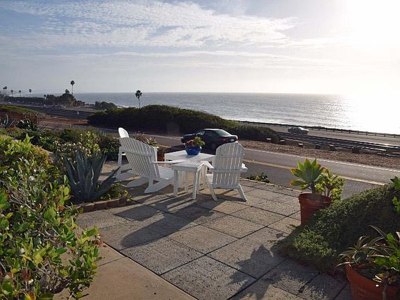 2 bed, 1 bath house with ocean and surf views from Pipes to Swami's. Tile floors throughout so easy care. Cardiff Rail Trail is across the street and it is a short walk to the beach. Walking distance to downtown Encinitas, also. No smoking. On-street parking only. No garage.
