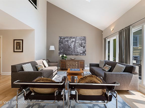 Enjoy suburban living without giving up the perks of the city - this recently renovated 4 bedroom 4 bath contemporary two-story home sits just steps from shopping, dining, Lake Michigan, and Metra. The spacious eat-in open concept kitchen has been upgraded with granite counters, island and stainless steel appliances. Kitchen opens to family room and sliders to fenced in beautifully landscaped yard and patio area. Dining and living areas on the main level have brand-new oak flooring. Living room opens up to a gorgeous large second story terrace, perfect for entertaining. First floor also includes a bedroom and stunning remodeled full bath. Three bedrooms on second floor all updated with gorgeous bamboo flooring. Master Bedroom includes full bath with shower and jacuzzi tub, and a walk in closet. Convenient upstairs laundry. Attached 2-car garage. Full basement with tons of storage. New furnace, water heater, and AC. Amazing location and home.