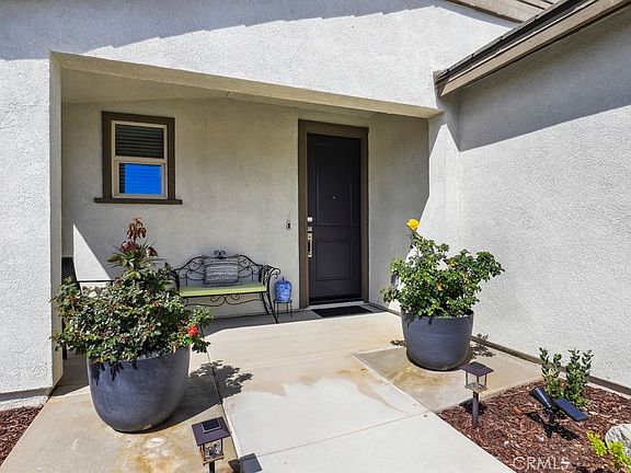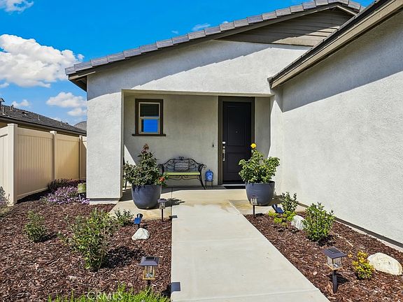 Located in an active 55+ Altis community, this single-story residence hosts an expansive open floor plan of over 1,419 square feet of living space. You will be greeted with an enlarged patio area for added appeal, you then enter into an open great room, dining area, and kitchen with a large walk-in pantry. It features a welcoming foyer as you enter the home with vaulted ceiling throughout the entire living space and primary bedroom. It has recessed lighting throughout the home, smart thermostat, smart door lock, smart doorbell, and smart garage door control which are setup and wired to work with smart home control devices. You can save on electric bills and help the environment with the up to date 8 solar panels that transfer to the new owner at the close of escrow. This amazing home has ample natural light. All windows feature stylish horizontal vinyl-wood window blinds throughout. The outdoor living space is designed for comfort and total relaxation, featuring a large porch, synthetic lawn, fruit trees, and BBQ grill. Interior Flooring is laminate in the living areas and bathrooms with carpet in the bedrooms. Direct access to a spacious two car garage with a powered garage door. Come visit to experience The Altis living experience and all it offers. With resort style amenities and activities. The VuePoint-16,000 sq. ft. recreation center features sparkling pools & Spa, swim up cabanas, fitness club & flow studio, DIY bar & drink counter, billiards room & lounge, outdoor firepits & BBQ's, 5 pickleball courts, and Trails & Paseos. The community offers many activities your family is sure to love.The community is just a short distance from outlet malls with the ease of shopping and close to all freeway access of the 10/215/60 Freeways.