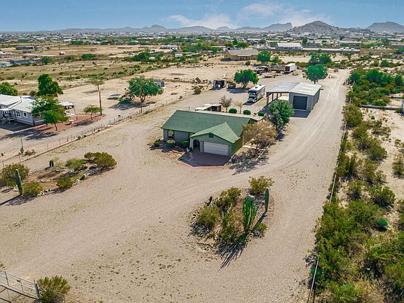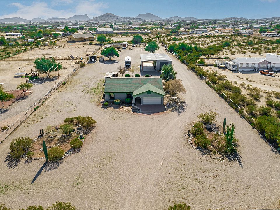 Over 2 acres with NO HOA!!! This 1,695 sqft (3 bedroom, 2 bathroom) home is placed the perfect distance from the city and just off the base of San Tan Mountains. The full fenced 2.346 acres has a large 1,200 sqft shop complete with 2 separate restrooms. Bring your animals, toys and dreams because this property has so much potential! Property is currently on a well but EPCOR is now giving the option to tie in to city water.