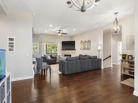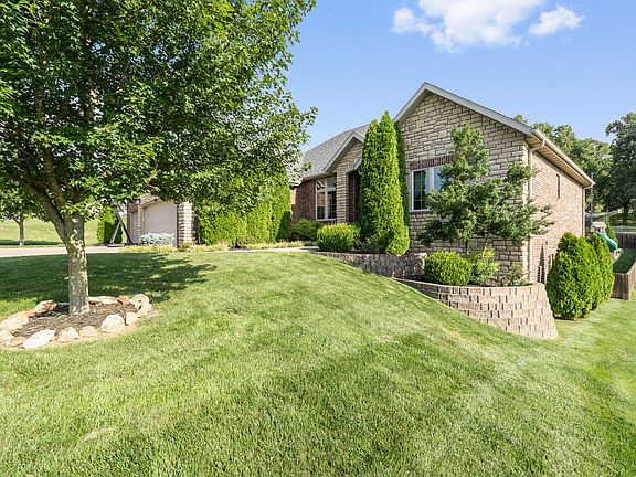 Beautiful brick and stone walk-out basement home in the gated community of Lion's Gate! Located in Kickapoo Schools, this home features 5 beds, 3 baths, a basement with wet bar & John Deere room, and an outdoor gas firepit area! Inside, discover an open floor plan with hardwood floors, gas fireplace with granite surround, and a formal dining area. The kitchen offers granite counters, a farmhouse sink with touch faucet, subway tile backsplash, stainless appliances including a gas range, Alder cabinets, a breakfast nook, and pantry! The primary suite is bright & spacious with a dual sink vanity, jetted tub, walk-in shower, and walk-in closet. The main floor is completed by 2 more bedrooms, a laundry room, and full bathroom. The walk-out basement is perfect for entertaining with a wet bar, 2nd living room, 2 bedrooms (one with a built-in homework area), John Deere room, and a full bathroom. The backyard has a full wooden fence, covered deck and lower level patio, and concrete patio with gas firepit. Other features include: a security system and the 3rd car garage is 24' deep. The gated community also offers a playground, community center, swimming pool and tennis court. Quick access to Campbell/Hwy 60.
