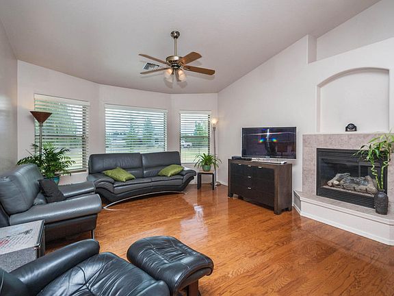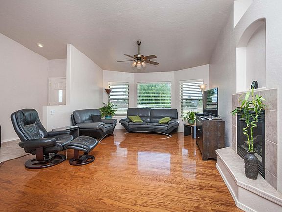 Must see... car lovers dream.. Beautiful home with 3 car attached and 5 car detached garage. (32x45). Great for car enthusiast or use as work shop. 4 bedroom, 2 bath home with solid surface counters, upgraded tile and real wood floors. Great room with fireplace. Separate doors from master to enjoy the pool. Eat in kitchen. Solar electric grid tied on the roof. Electric bills in the $20/mo range... Think of the savings.. Built in heated swimming pool enclosed in private rod iron gated yard. Fully landscaped front and back. Home was just painted last year with 3 coats of paint.