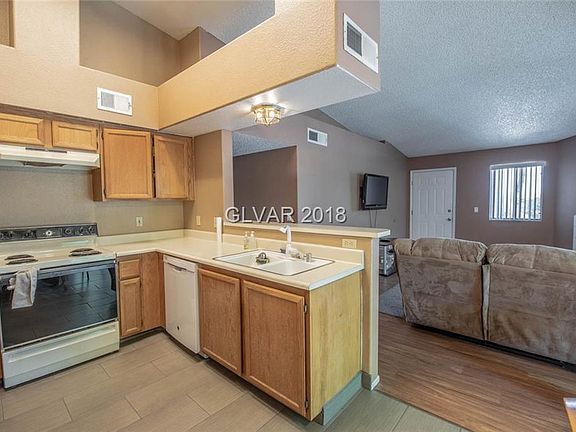 Well Kept two bedroom condo located in the heart of beautiful Green Valley Henderson, close to schools and shopping. Upstairs unit with balcony overlooking a common area with trees and grass. Laminate wood and tile flooring through out. Refrigerator, washer/dryer, and new dishwasher included. Spacious rooms and a fire place. Community pool and spa. Zoned for Green Valley High School! Move in ready!