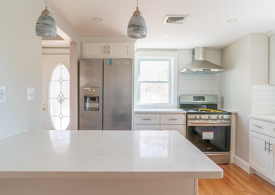 Available NOW! Newly Renovated 4 Bedroom in Braintree! A chance to rent a newly renovated 4 bedroom home in a great location. Huge lot with plenty of parking. Central Air, Refinished hardwood floors, new kitchen with white cabinets, stainless steel appliances, Quartz countertops and a peninsula breakfast bar. Massive upstairs bedrooms with brand new carpet. Must have Good Credit/References