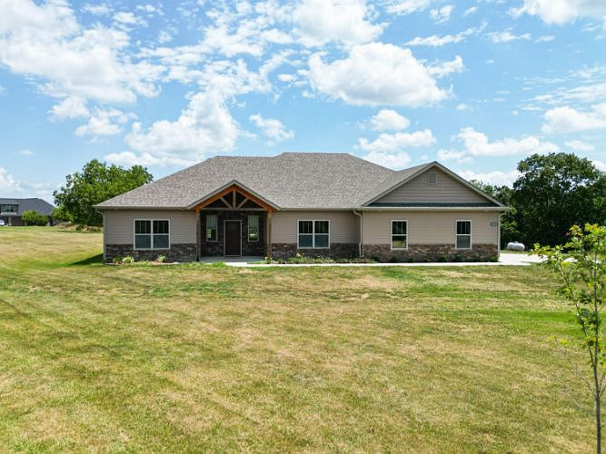Beautiful one level home on approximately 5 acres in the Southern Boone School District, just outside the city limits. Open floor plan with a large living room. Kitchen has granite countertops, with kitchen island, and walk-in pantry. Split bedroom design. Fourth bedroom could be used as an office space. Large covered patio great for hosting guest.