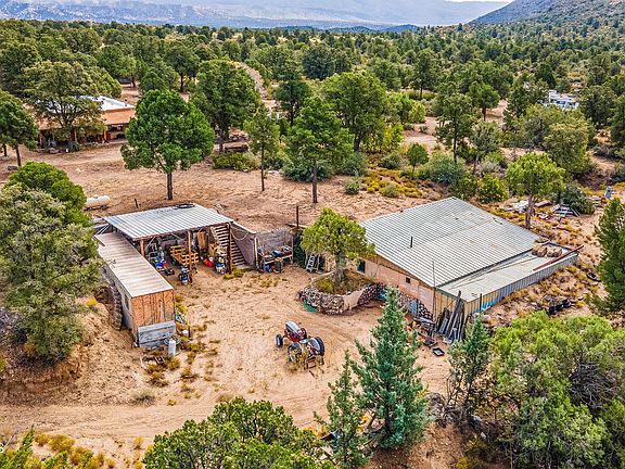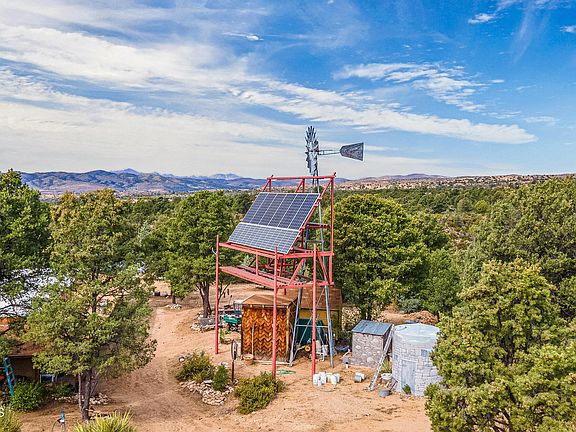 RUSTIC, OFF GRID GLORY! Incredibly unique home and property. All of the heavy lifting has been done! Eclectic Adobe home & separate guest house await. Home's walls are apprx 22'' thick; great for stable climate control. Floors are adobe as well. Solar tower generates all electrical needs. 6 solar panels were replaced in May 2024 and all batteries are new as of Nov 2023. Private well & well house are in place. Well is 340' deep & produced 20+ gpm at time of drilling. Two water storage tanks (one above ground & one below) have a combined capacity of apprx 1,700 gallons. Main home & guest home roofs were re-rolled Oct 2023. Wood-burning Fireplace. Exterior storage galore w/ multiple structures to accommodate. ** CLICK MORE for ADDT'L IMPORTANT INFORMATION! **