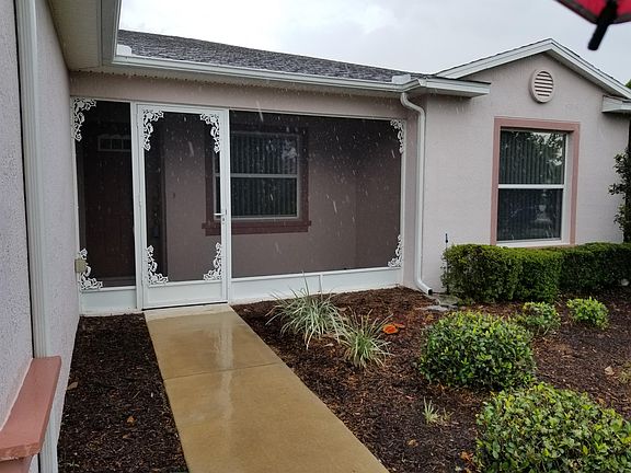 Tired of keeping up a big home and property? Just want to play and relax? This is the home and private community to have it all! Perfect sized 3/2 home in affordable retirement community. Guard gate. Golf, tennis, soft ball, heated pool, and many special interests groups and activities. Minutes to The Villages and entertainment. Oak cabinets, beveled edge formica counters, split bedroom plan with roomy baths, walk-in closet in Master. Enclosed 9x17 Florida Sun Room! Screens on garage doors. Mature landscaping. Glacier Water Softener. HOA includes: mowing/edging, garbage pickup, Spectrum Bronze Tier TV and Internet as well as access to all amenities in this beautifully landscaped private community. Seller concession of $1000 to buyer at closing! BRING OFFERS, MOTIVATED SELLER
