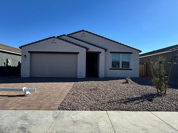 The open-concept layout features 8-foot interior doors and a 4-panel center sliding glass door in the great room, creating a seamless connection to the covered patio—perfect for enjoying Arizona's indoor-outdoor living. The spacious backyard invites endless possibilities for entertaining, gardening, or simply relaxing under the desert sky.