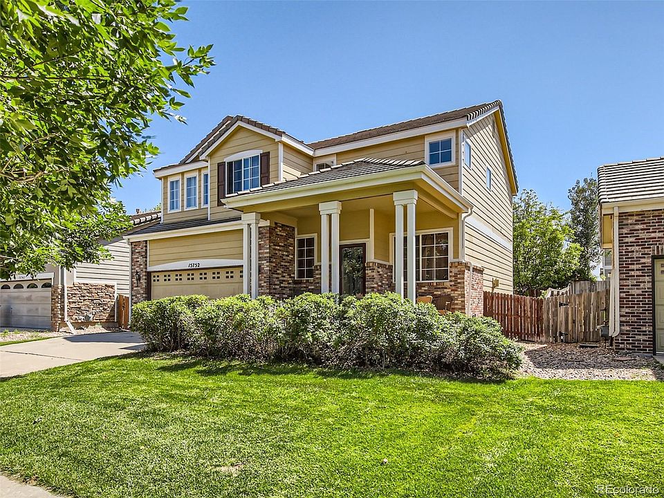 Welcome home to the sought-after Frontera Village neighborhood of Commerce City, Colorado. This charming 3-bedroom, 3-bathroom gem offers a perfect blend of modern elegance and comfortable living. With its unique features and spacious layout, this home is a true sanctuary that awaits your personal touch. As you step into this home, you'll be greeted by a grand two-story living room that bathes the space in natural light, creating an open and airy ambiance that's perfect for both relaxation and entertaining. The private office provides an ideal space for working from home or pursuing creative endeavors. The eat-in kitchen features modern appliances, ample countertop space, and a cozy dining area where cherished memories and delicious meals can be shared with friends and family. Upstairs, a generously sized loft area offers endless possibilities. Whether you envision it as a playroom, a second living area, or a serene home office, this versatile space can easily adapt to your needs. Retreat to the luxurious primary suite that offers a soothing haven after a long day. Complete with an en-suite bathroom, this space is designed for relaxation and rejuvenation.