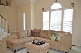 A SOARING VAULTED GREAT ROOM & GRAND FRONT INSET WINDOWS GRACE THIS MOVE-IN READY 2 STY! Former Model w/BRAND NEW roof & a finished lower level complete w/Half Bath! Lots of cabinetry & fine Whirlpool appliances! Windowed walk-in closet & dual sinks in Mstr! Handy Bdrm level Laundry! Fenced yard, community pool & close to park & elementary school!