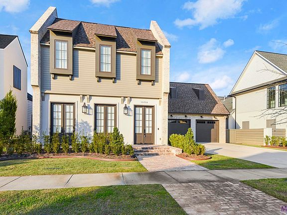 Gorgeous 4 bedroom, 4.5 bath, two story luxury home located on a lake front lot in highly desirable Long Farm Village! Downstairs features a master suite and additional bedroom and full bath. Upstairs has two additional bedrooms, 2 full baths, and a loft. The chef’s kitchen has slab quartzite countertops, integrated GE Monogram full size side by side refrigerator, porcelain farmhouse sink, 6 burner gas range with griddle, GE Monogram conventional and convection ovens, pot filler, 3 lateral cabinet, large center island with seating for six, and back pantry with quartzite prep counter space. The kitchen and dining rooms are open to the living room, which has a gas log fireplace and views of the backyard. The spacious master bedroom features an en suite bath with freestanding soaking tub, separate shower with marble flooring, dual vanities, separate water closet and 30x30 porcelain tile. The large walk in closet includes custom cabinetry and shelving, with a marble island. The laundry room has quartzite countertops, laundry sink, and plenty of cabinetry for storage. The washer and dryer will remain. All windows have neutral custom shades or plantation shutters. The backyard includes a covered patio with a fully equipped outdoor kitchen, featuring a 36 inch blaze grill, bar sink, and mini fridge. The Long Farm community also has a neighborhood lake, walking trail, and access to the pool and clubhouse. Close to great restaurants and shopping. Convenient access to I-10, Baton Rouge, and Ascension. Call me today to schedule your private tour!