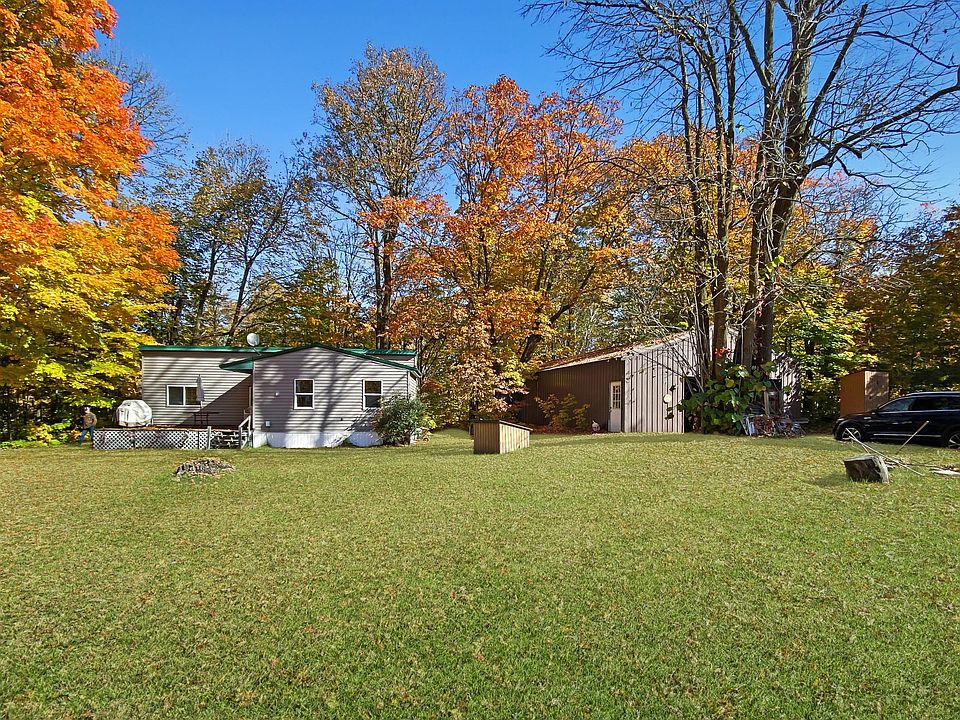 Just under an acre of land with mature maples, deck, pole building and down a private road. The home has 2 bedrooms, a flex room as you walk in that could be an office, full bathroom with newer LG washer/dryer combo, also kitchen and living room areas. The metal roof is only a couple years old. Septic cert coming soon.