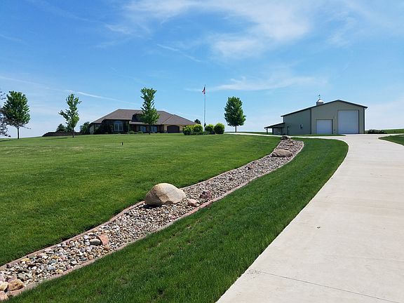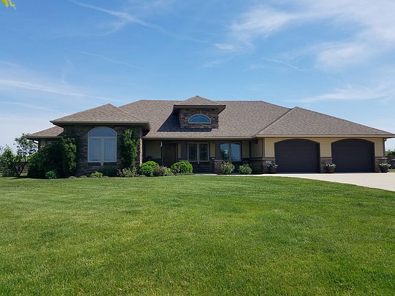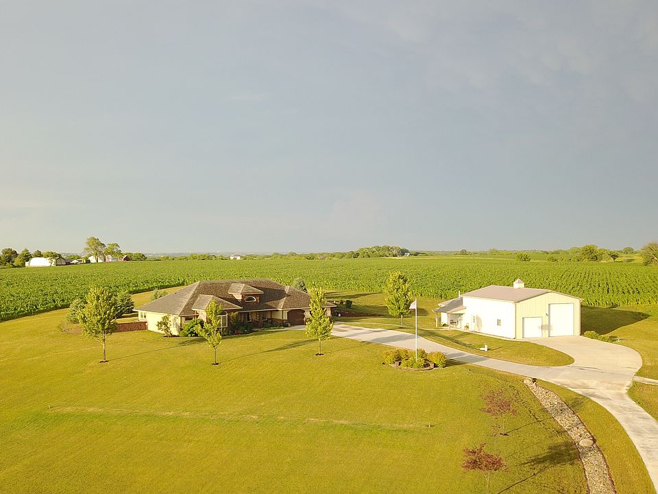 Warren County acreage in beautiful area on paved R45 Highway, easy I-35 access, 20 minutes to Jordan Creek, 30 minutes to downtown. Approximately 3.1 acres (per survey). Custom-designed partial berm home with 1850 sq. feet, built in 2009 using 2” x 6” walls and energy-efficient geothermal heat/air (all electric) with in-floor heat throughout the house and garage. The exterior is stone and cement board siding, and gutters are tiled underground. Oversized attached heated garage and paved driveway with lots of parking. Covered front porch and large cement patio in back. Beautifully landscaped with well-maintained flower beds. The layout is an open floor plan with vaulted ceilings and unique upper window to bring in extra natural light. Kitchen features oak cabinets, black granite countertops with travertine tile backsplash, breakfast bar, black appliances, walk-in pantry/mud room, plus an additional large pantry. Floor covering is carpet and tile. The home features a built-in custom entertainment center and matching unique 12’ pillar. There are no steps into the house and all doorways are 36” wide with solid wood doors featuring an arched design. Sunroom on the east side provides great sunrise views. Large master suite includes lighted tray ceiling, custom tiled 4’ x 7’ walk-in shower, and large walk-in closet with laundry area & built-in ironing center. There is no basement so the utility room doubles as a cement-all-around tornado room. This acreage includes a 30’ x 60’ metal building with two large doors 8’ & 14’, cement floors, and RV hook-up. One section is finished as a 20’ x 30’ separate room with ¾ bath. Included items: Dishwasher, Washer, Dryer, Microwave, Refrigerator, Stove, smoke detectors, Central Vac, bar stools, drapes and shades. Take I-35 to exit 52 (St. Charles/St. Marys), turn east on G50 Hwy, drive 3 miles to R45, turn right (south) ¼ mile. Shown by appointment. 515-480-1081