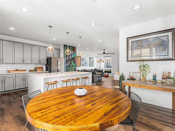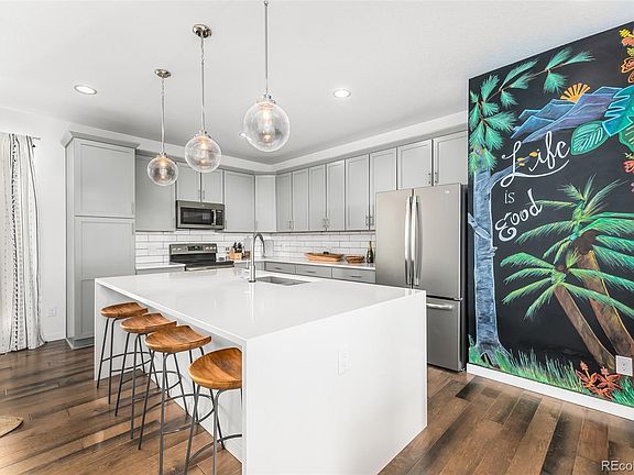 Stunning home built in 2018 with incredible high-end finishes throughout! Everything is 100% move-in ready, the sellers have not missed a single detail. You won't want to miss this home, the upgrades truly stand out from all the rest. Beautiful open floor plan with huge kitchen featuring a waterfall island counter top ($3600 upgrade), and 6 piece kitchen made for all of your entertaining needs. Every space in the house is bright and open with 10 ft ceilings, 9 ft doors, and huge windows letting in tons of natural light and incredible views. Engineered hardwood floors throughout the house and custom blinds on every window. The main bedroom features a walk-in closet and a breathtaking en-suite bathroom with a double vanity and two shower heads. Escape to the serene rooftop oasis, this one of a kind finished rooftop has a motorized awning with a wind motion sensor to enjoy mountain views, grill with friends, or get some peace and quiet away from zoom meetings and conference calls. The roof top is unlike any other in the community (nearly $10,000 update). The house is walking distance to Cherry Creek ecological park and trail and in the Cherry Creek school district and is tucked away off of the main road.