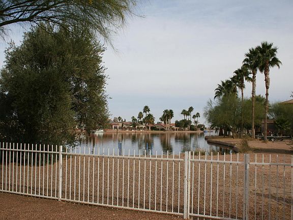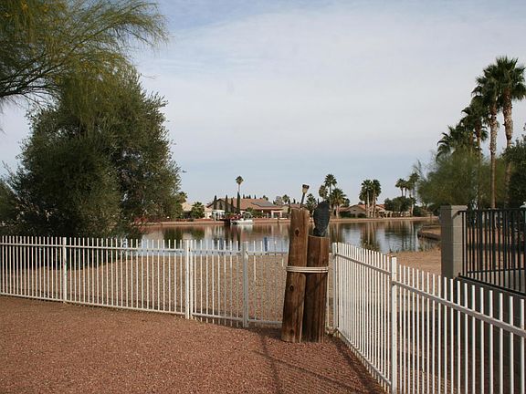 Beautiful lake front property. 3 bedroom with master bedroom split. Master bathroom with walk-in shower and grab bars and dual sinks. Great room concept with vaulted ceilings - Neutral plush carpet and 20'' ceramic tile - Open kitchen with oak cabinets and white appliances including microwave, refrigerator, washer and dryer. Enclosed Arizona room with wall a/c. Separate storage shed in back/side yard - Separate garage door entry from outside. Small boat dock at back of property