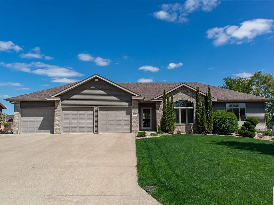 There are so many things to LOVE about this home! Ranch home, recently updated with new flooring, new paint, new fireplace surround, kitchen updates and so many more classy touches to this home! 5 bedrooms, 2 ½ baths, open floor plan, great storage and closet space, and a great view of the sunrise on the maintenance free deck! New GE Profile appliances in the tasteful and functional kitchen with a walk-in pantry! Main floor laundry room with great space for organization! Established yard, walk out basement to concrete patio and great landscaping and backyard space. The 4 car garage space is perfect! Located on a cul-de-sac and move in ready!