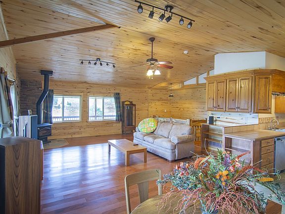 I will leave the decision to you on this appealing property with sweeping views of the Sangre de Cristo mountains, inviting stone-lined walking paths, graveled fire pit/barbeque area, manicured landscaping, a circular drive, AND the spacious, open concept interior. Outside, you have the equally inviting wrap-around, covered, low maintenance, and lighted deck. I think you'll agree that this three-bedroom, 2.5-bath mountain home includes all the above and more, making it appealingly packed with potential. This 8.65-acre corner parcel has impressive, fire-mitigated Ponderosa Pines. The main level boasts an inviting open concept kitchen, dining, and living area, with two entries from the wrap-around deck. That quintessential Colorado cabin feel is ever-present with varied wood accents throughout the home. The walk-out basement has a large den/tv/office area, 3rd bedroom, bath, and laundry area; there is also a two-car garage and utility room. This property is located off well-maintained roads in the Eastcliffe subdivision of Westcliffe, Colorado. If your dreams include country living with mountain views, call to see this gem today!