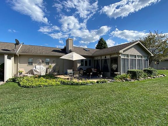 FORE Carefree, Brick, Golf Course Condo! This Condo features; gorgeous Golf Course views, well thought out detail along with a relaxing sun room with a Fireplace to take the nip out of those chilly nights. Two nice size Bedrooms with eyebrow windows and master with master bath. The open living/dining/kitchen area host beautiful hardwood flooring & the lovely kitchen has all the appliances plus a wine cooler, island & pantry. Relaxing, private, patio on the golf course for entertaining or just kicking back. To top it off there's an attached 2+ finished garage with overhead storage. Ownership provides access to an 18 hole golf course, restaurant & pub, fitness center, indoor heated pool, tennis & bocce ball courts, chalet with sledding hill, walking trails, activity bldg, storage area, 2 fabulous all sports lakes, Lancer & Lancelot, 15 beach clubs some with beach & bath houses. You can fly to/from Sugar Springs from the well maintained grass airstrip.