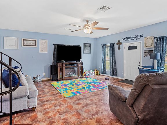 Qualified for 100% Financing — Zero Down Payment! Discover country living at its finest in Moss Bluff, LA! Enjoy the peace and privacy of over four beautifully landscaped acres, all while being just minutes from local shopping, dining, and everyday conveniences. This charming 4-bedroom, 2-bath home welcomes you with a classic front porch featuring decorative columns and iron railing—perfect for morning coffee or evening sunsets. A screened-in back porch offers an ideal retreat for relaxing and taking in the serene country views. Inside, you’ll find a bright, inviting living area and an updated kitchen adorned with white cabinetry, quartz countertops, and matching white appliances. A second, spacious den provides plenty of room for gatherings or entertainment. The massive primary suite is nearly 500 square feet and showcases crown molding, recessed lighting, French doors to the porch, and luxury vinyl plank flooring throughout. The en-suite bath offers a spa-like experience with a dual-sink vanity, soaking tub, separate glass shower, and an oversized walk-in closet. Don't miss out schedule your showing