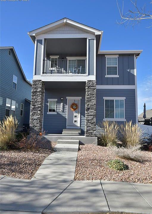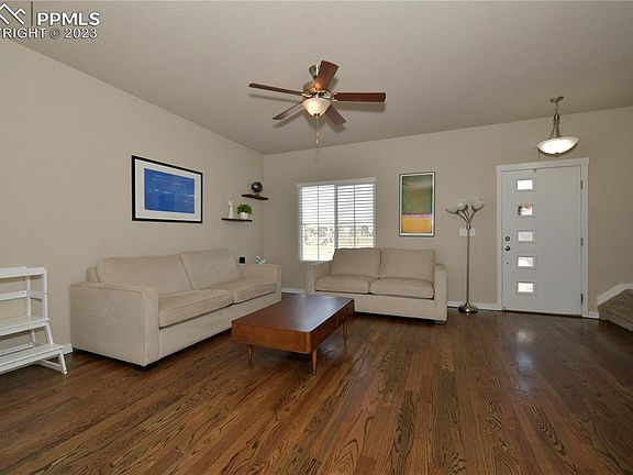 Beautiful Spacious 2 Story Home* Open Great Room / Living Room * Large Kitchen With All Kitchen Appliances That Includes Refrigerator, Dishwasher, Cook Top Stove, Microwave , Pantry & Abundance Of Cabinets * Dining Area * Hardwood Floors On Main Level * Spacious Primary Bedroom With Huge Walk In Closet & 4 Piece Bathroom * Upper Level Loft Area Walks Out To Covered Balcony * Additional Two Bedrooms , Full Bath & Laundry On Upper Level * Unfinished Basement * Oversized Attached 2 Car Garage * Tesla Car Charger * New Trex Deck * Side Yard Has Low Maintenance Landscaping With Artificial Turf * Air Conditioning * Mountain Views * Close To Ft. Carson, Peterson AF, Schriver SFB & USAFA Military Base *