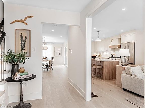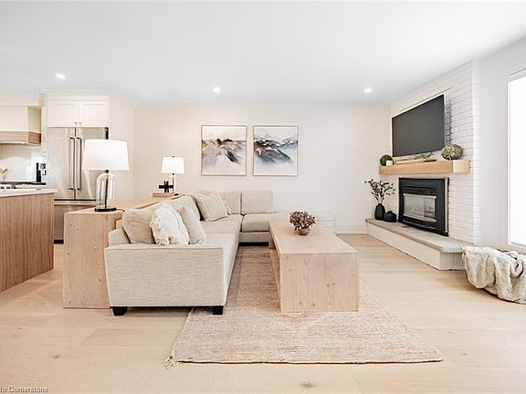 Your Dream Townhouse Awaits – Thoughtfully designed with impeccable finishes, this stunning home offers unparalleled quality in the sought-after, family-friendly community of Tyandaga. A rare gem, featuring 4 spacious bedrooms, 3 bathrooms, a fully finished walk-out basement, and garage. As you step inside, the open-concept design immediately invites you in, with an airy, light-filled atmosphere that creates an immediate sense of comfort and space. The chef-inspired kitchen is a true showstopper, boasting an oversized entertainer's island, sleek countertops, and premium appliances—perfect for both gourmet cooking and casual entertaining. The main level flows effortlessly between the dining, kitchen, and living areas, and includes a convenient 2-piece powder room for guests. Upstairs, your oversized primary suite is a private retreat, complete with a generous walk-in closet, a luxurious 4-piece ensuite, sitting area, and your own private balcony. Two additional well-sized bedrooms and a beautifully appointed 5-piece bathroom complete the upper level. The fully finished, walk-out basement is bright and spacious, featuring a large recreation room with a gas fireplace, plus an additional bedroom—ideal for guests or a home office. Step outside to your fenced backyard, offering easy access to the pool and ample space for dining, lounging, and enjoying the outdoors. Professionally renovated and fully permitted, this home is move-in ready with no detail overlooked. Located with convenient access to highways, public transit, top-rated schools, 2 local parks (walking distance), Bruce Trail, golf, and shopping—this townhouse offers the ultimate in both luxury and convenience.