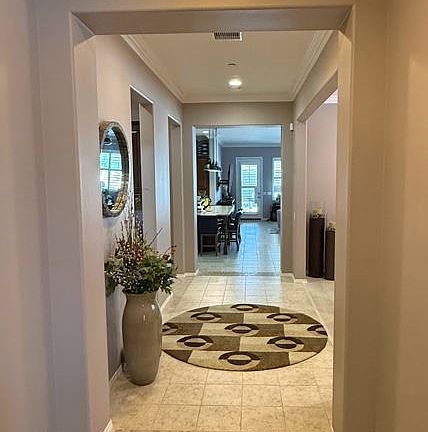 • Breakfast Bar, Ceiling Fan(s), Crown Molding, Separate/Formal Dining Room, High Ceilings, Living Room Deck Attached, Open Floorplan, Pantry, Quartz Counters, All Bedrooms Down, Bedroom on Main Level, Main Level Primary, Primary Suite, Walk-In Pantry, Walk-In Closet(s)