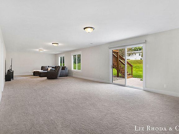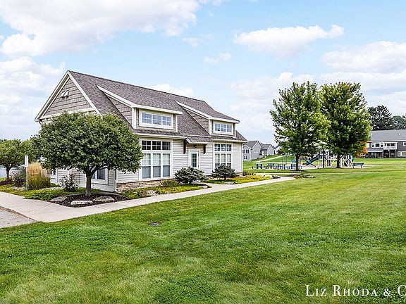 This stunning two-story home, built in 2021 in Byron Center, offers everything you could wish for—and more! Situated on a cul-de-sac lot, this property features a walk-out basement, a spacious three-stall garage, a large covered porch, and a covered back deck. Inside, you'll find a cozy fireplace, custom window blinds throughout, zoned heating and cooling, and efficient foam insulation. The kitchen features quartz countertops, and the mudroom comes equipped with lockers and a bench. With 9-foot ceilings on the main floor and impressive 10-foot ceilings in the main living area, the home feels open and airy. Additional highlights include underground sprinkling and an expansive primary suite complete with a large tiled shower, soaker tub, water closet, double sinks, and a spacious walk-in closet. Plus, there's room to grow with two future bedrooms and a bathroom already framed in the basement, along with a fully finished recreation room and ample storage.