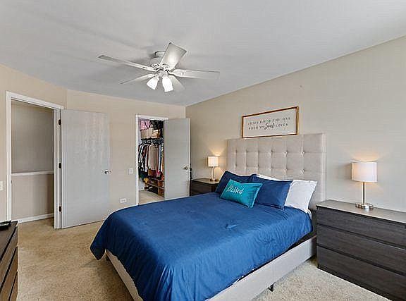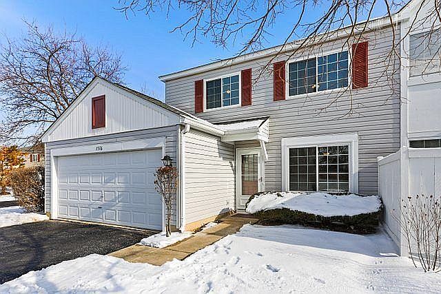 Move-in ready! End unit with lots of updates including new triple pane windows and patio door; wifi-enabled thermostat; new hot water heater; (2019), matching stainless steel LG kitchen appliances, and new living room recessed lighting. There is a 2nd-floor full-size laundry room new ceiling fan in the second bedroom, and a private patio with 2-car attached garage. District 204 High School. It won't last long!!