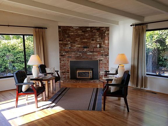 This adorable 2 bedroom 1 bathroom home sits on a huge private corner lot at the top of sunny Seaside. You'll love the open floor plan with lots of light streaming in through large dual pane windows. It has newly refinished hardwood floors, open beamed ceilings and a floor-to-ceiling brick fireplace. The exterior has been freshly painted. There are many outdoor garden areas to sit and enjoy the sunny Seaside weather. One car garage, 6 parking spaces, room for RV parking. Fenced yard. Even a lemon tree. A Must See!!