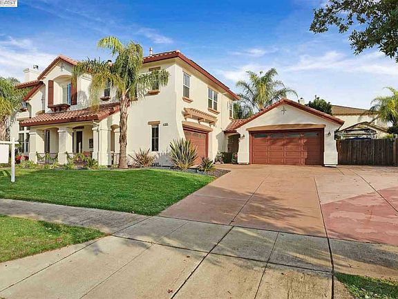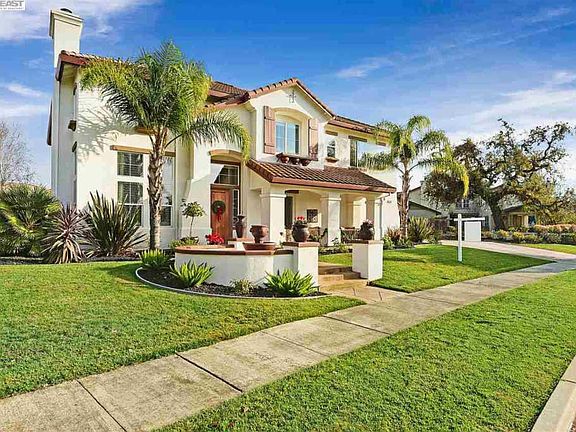 Beautiful former model home in very desirable Prima neighborhood within walking distance to three levels of school, proximity to vibrant Downtown, outdoor activities, local wineries, and major commuter corridors. Popular floor plan features elegant Formal Living Room and Formal Dining Room with wine closet and adjacent butler's pantry. Spacious Kitchen/Family Room boasts cherry cabinetry, center island with bar seating, breakfast nook, new Wolf gas cook-top, and stone surround gas FP. Main level BR/Office. Upstairs oversized Master BR with Retreat with FP, updated Bath with his/hers vanities, jetted tub, and walk-in closet. Three additional BRs share two full updated baths. Loft with built-in workspace, crown molding, recessed lighting, speaker system, leased solar, and more. Covered front porch, private Backyard with hot tub, waterfall feature, and room for pool. Split 4 stall garage with RV/boat parking. Mature palms and landscaping. No HOA dues.
