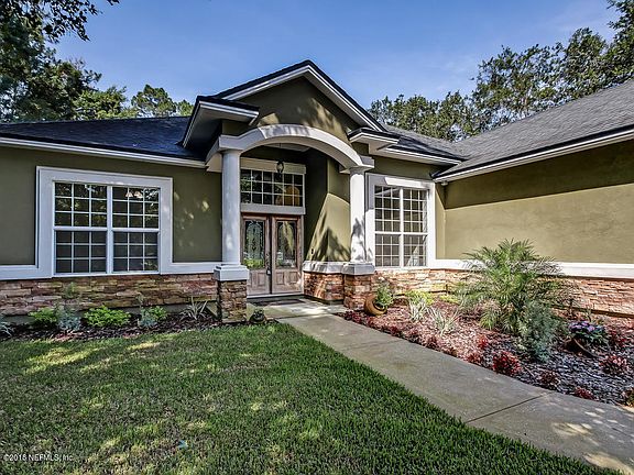 This immaculate custom built five bedroom four full bathroom home is ready for you to move in now! New carpet and paint downstairs. This 3300 sq. ft. home is located on 1.3 acres in an open rural community with no HOA or CDD fees located in the highly desirable sought after St. Johns County. The first floor is a split floor plan with the master bedroom and three additional bedrooms downstairs. Also, downstairs is the formal living room and formal dining room, kitchen, and laundry room. The large master bedroom has a tray ceiling and door to the lanai. The master bathroom is very spacious with two large master closets. One closet also features additional storage under the stairwell. This home has many unique features like 10 foot ceilings throughout the up and downstairs.