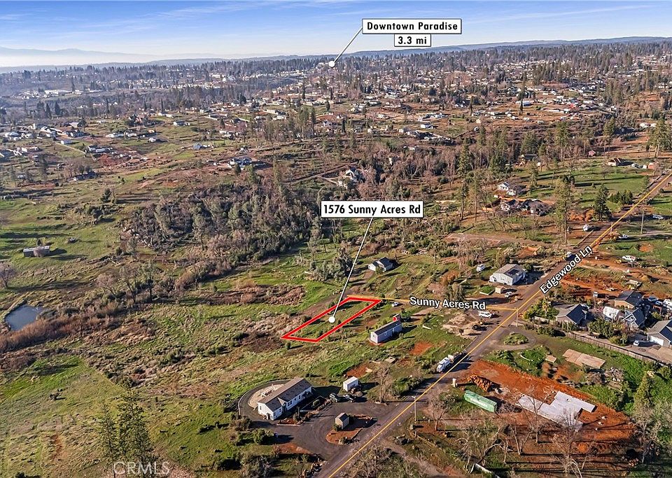 Beautiful parcel located in Paradise, CA. This 0.43-acre lot offers stunning canyon, valley, and sunset views that create a truly peaceful backdrop for your future home. Situated near the paved end of Edgewood on a quiet, low-traffic lane, the property provides both privacy and convenience. Enjoy the serenity of nature, open skies, and scenic surroundings while still being close to town amenities. This tranquil setting is an ideal canvas for a custom home or private retreat, where you can relax, unwind, and take in the natural beauty that Paradise has to offer.