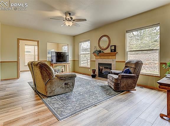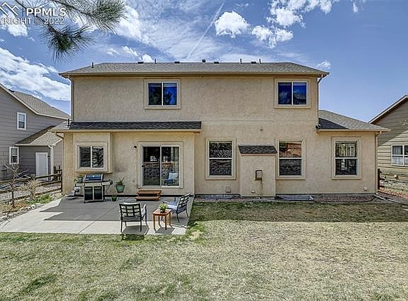 Very Popular 2-Story floor plan in Jackson Creek. Walk in to the open formal living room/dining room space with large windows to let in the natural light. The eat-in kitchen features quartz counters, kitchen island, kitchen pantry, and planning desk and walks out to the back patio. Open and bright family room has a gas fireplace with tile surround and easy-to-maintain flooring. Adjoining the family room is the large office with more natural light. Finishing the main level is a powder room/laundry room. Upstairs is the master suite with vaulted ceilings and mountain views. The attached 5-pc bath features dual vanities, jetted tub, separate shower, and walk-in closet. There are 3 more spacious bedrooms on the upper level that share a full bath with dual sinks and skylight. The finished lower level has two game/rec room spaces with a pellet stove for those chilly nights. Another bedroom and 3/4 bath are here for guests. Other special amenities of this home include durable stucco exterior, over-sized 3-car garage, a fenced rear yard, central air, humidifier, automatic sprinklers, and the pool table stays!