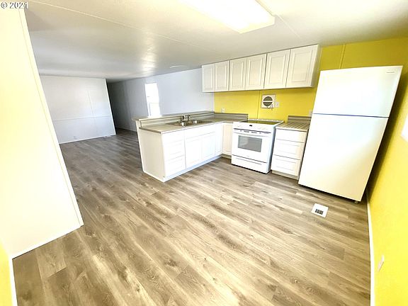 Manufactured home in quiet 55+ park. Great location close to shopping and restaurants. Brand new flooring throughout the home. Brand new kitchen cabinets and appliances. 2 bedroom, 1 bath with added storage workshop and covered porched. Washer/ Dryer hook up in unit. Buyer must be approved by the park. Space rent is $420 monthly. Call today for a showing.