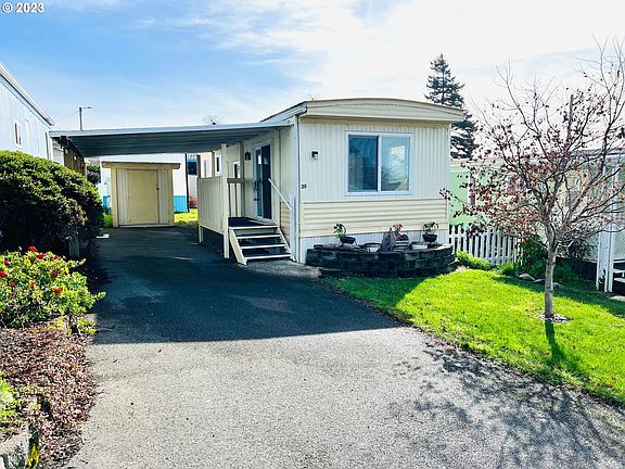 Wonderful home or a home away from home retreat while visiting the beautiful coastal town of Brookings. This well-maintained manufactured home is located in a 55+ community and features 1 bedroom, 1 bath with added storage shed in back and covered parking. Short distance to Port of Harbor, Beaches, River and Redwoods. Buyer must be approved by the park. Laundry mat within park. Space rent is $435 monthly. Call today for a showing.
