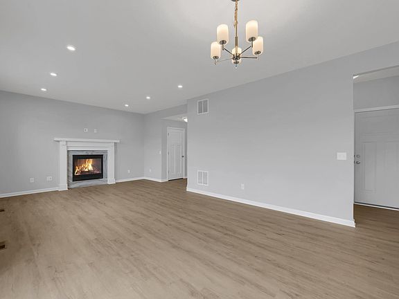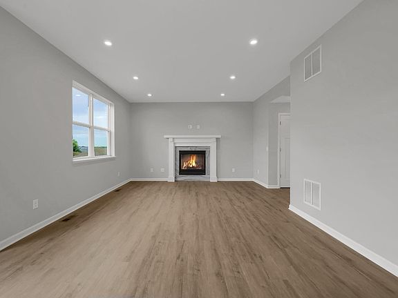 The Carter floorplan welcomes you with a covered entry. A two-story hallway leads to the family room with a lovely gas fireplace featuring granite surround and white mantel. The dining room offers a bump out space, lending more room for a larger table. The kitchen is filled with numerous upgrades including white painted cabinets, quartz countertops, and herringbone backsplash. Your kitchen is complete with stainless steel appliances including a gas range and exterior vented microwave. The large, walk-in pantry is a must have. Upstairs has 3 bedrooms including the owner’s suite with a private bathroom featuring double sinks and a large walk-in closet. A laundry room and additional bath are upstairs as well. Plenty of space in the unfinished lower level to complete as you desire.