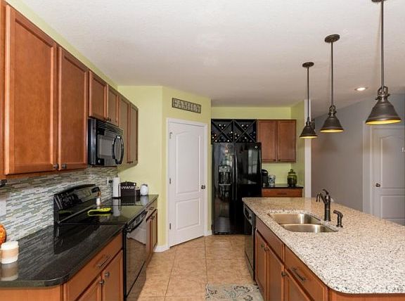 BETTER THAN NEW! Built in 2015, this spacious two-story home in a gated community has numerous upgrades none of which are even offered by the builder. The kitchen has granite counters, a tile backsplash and a walk-in pantry. Three beautiful pendant lights hang above the breakfast bar on the center island which has custom woodwork. Theres a wine-rack above the fridge, pull-out shelf organizers in the cabinets and under-cabinet lighting. The first floor master suite has a sliding barn door to the bath which features a walk in shower, dual sinks, a custom-built storage unit and two closets. Off the front foyer there is a private den/office, a hallway to a half bath and a closet. Upstairs there is a large media/bonus room with a storage cabinet, four more bedrooms and another full bath. There are five ceiling fans, an alarm system and numerous decorative light fixtures. The back yard has a paver patio off of the covered lanai. There is also a brick fire pit, an outdoor storage box and a completely fenced-in yard for privacy! The garage has a work bench with storage cabinets and a garage door opener. The covered front porch has custom-built planters and railings and theres a storm door on the front of the house. The community has a resort-style pool with a covered outdoor kitchen, an exercise room and cabana-style seating. Schedule a showing today to see this very special home!