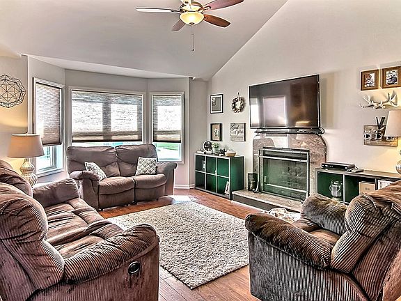 MOVE IN READY 4BED/2BATH HAS ALL THE UPDATES YOU ARE LOOKING FOR! Spacious living room with FIREPLACE & newer flooring, Kitchen boasts maple cabinetry, granite countertops and stainless appliances! 3 seasons room off dining area has loads of windows to enjoy the beautiful large backyard! Master bedroom has private bath featuring granite sinks, whirlpool tub and separate shower! Other beds nice size and full bath located in hall! Lower level has brand new carpet, 4th bedroom and exposed rafters for an up to date look! Plenty of storage in an unfinished storage room!