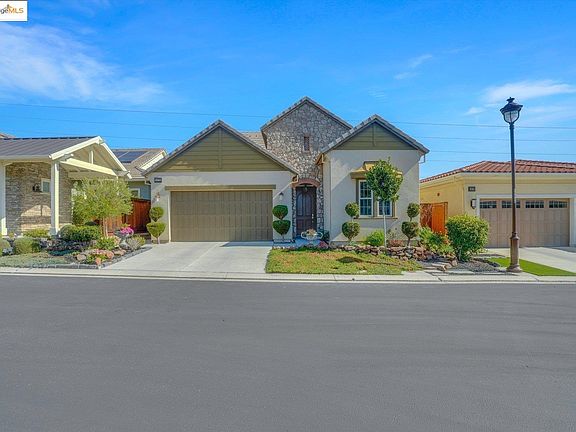 Stunning home located within Trilogy at The Vineyards, Brentwood’s premier 55+ active adult resort community. This beautifully upgraded Vin Santo with Vineyard Cottage exterior offers 1,842 sq. ft. of open-concept living with 2 bedrooms, 2 bathrooms, and a spacious den. A perfect orientation for sunny morning exposure, it drenches the great room with a light and bright ambiance. The chef’s kitchen boasts granite countertops, upgraded wood shaker-style cabinets, an oversized island, premium GE stainless steel appliances, a fabulous pantry, and a coffee nook. The utility room offers additional storage and a smart, functional space. The primary suite features a spa-like bath, dual vanities, and a very large walk-in closet. Enjoy seamless indoor-outdoor living with a covered patio, lush landscaping, and no rear neighbors for added privacy. You will love the many fruit trees in this backyard oasis. Energy-efficient upgrades include a pre-paid solar lease that will transfer and a whole-house fan. Trilogy’s world-class amenities include Club Los Meganos with concierge service, gourmet restaurant, indoor and outdoor pool, full-service spa, fitness center, and vibrant social opportunities! Don't forget to call to schedule your club tour!