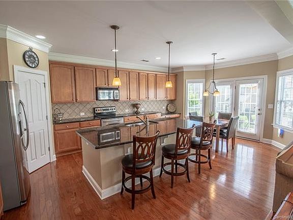 Available for in-person showings! There is so much to love about this home- -fantastic neighborhood w/every amenity imaginable & located on one of the cutest streets in Moss Creek, Cabarrus County Schools & taxes. Big open floorplan w/a dream-worthy kitchen, five bedrooms AND three full baths and the curb appeal will blow you away! The main level features a formal dining room, bedroom and full bath. Spacious, open great room w/ fireplace & built-in storage/shelves. The kitchen is nothing short of amazing- HUGE island with big breakfast bar, walk-in pantry, granite counters, tile backsplash, pendant lighting, lots of 42-inch cabinets & counter space, recipe desk & completely open to the eat-in area & great room. Master bedroom upstairs with gentleman's height, dual vanity, tile floors, soaking tub and separate shower. Two spacious secondary bedrooms and large bed/bonus room. Covered front porch, in-ground irrigation, flat backyard w/patio. Community pool, tennis, walking trails & more!