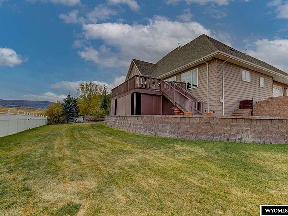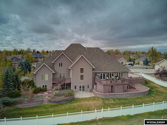 Outstanding custom home with an unbeatable east-side location! The open floorplan includes everything you could need with a separate living room and family room, finished walk-out basement and dual kitchens. Enjoy views of Elkhorn Creek and Casper Mountain from the spacious deck. Perfect for entertaining! The gorgeous master suite features a gas fireplace and spacious well-appointed master bath. The 1/2 acre plus lot is fully-landscaped with a terraced design which offers multiple outdoor spaces to enjoy.