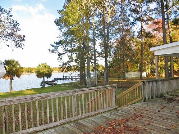 WATERFRONT DEEDED HOME; Spectacular views at desirable location. Open floor plan w/ all front water views. Great Room opens to huge deck that is partially covered. Spacious Master BR w/ master bath garden tub. This home has it all for permanent home or weekend getaway. Beautifully landscaped with Palmetto Trees at the edge of a sandy beach. Perfect entertaining home for fishing, boating, sunning!